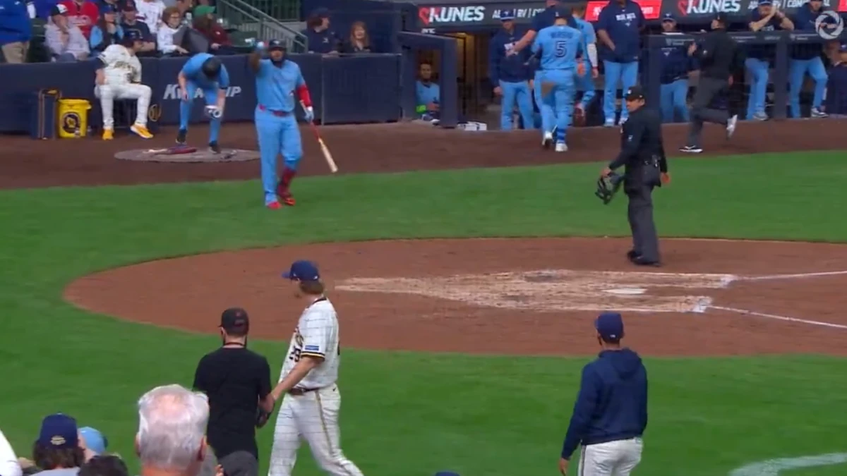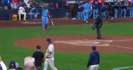 The moment came right after Megill worked a clean eighth inning for the Brewers. As the reliever looked toward Toronto's side and appeared to chirp, Guerrero stepped forward from the on-deck area and yelled for him to keep walking to the dugout, according to Mitch Bannon's report shared during the game.